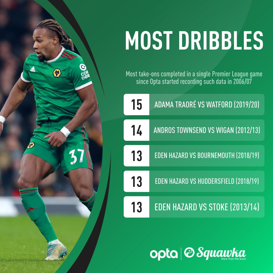 Squawka Football On Twitter Adama Traore Completed 15 Take Ons Against Watford The Most Recorded In A Single Premier League Game Since Opta Began Collecting Such Data In 2006 07 Season An Absolutely Bonkers